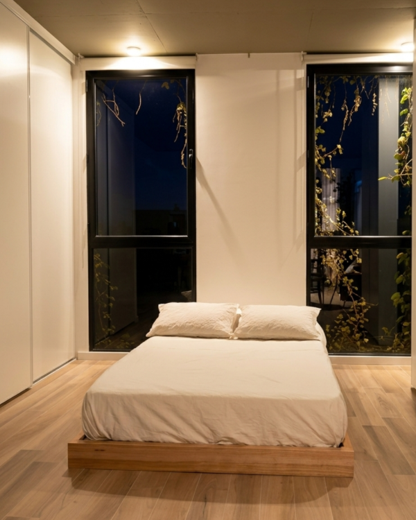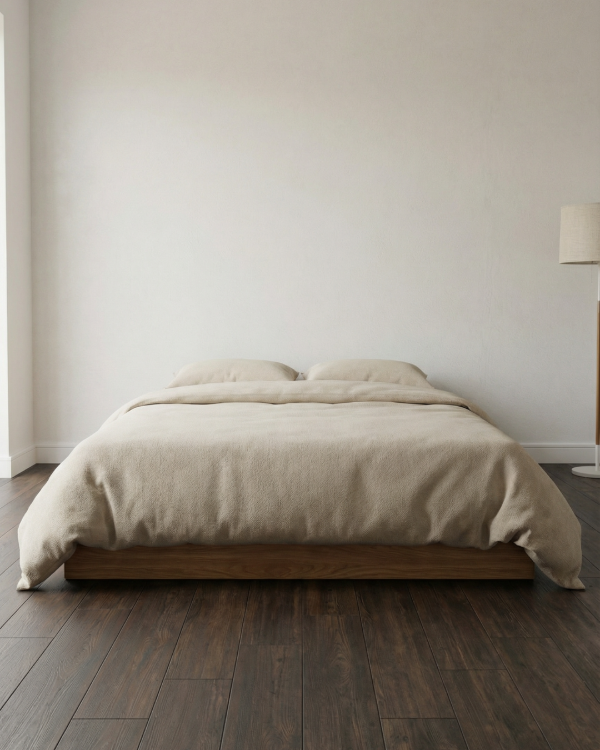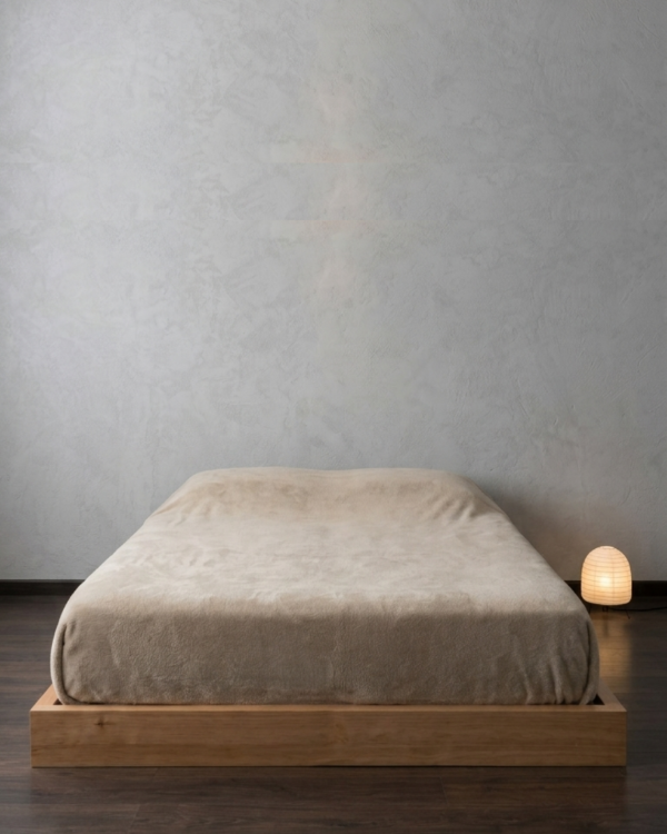 La cama SHIKU representa el concepto de suelo. Es un diseño pensado para quienes buscan una experiencia más cercana a la tierra, donde el dormitorio se transforma en un espacio de calma, introspección y presencia.