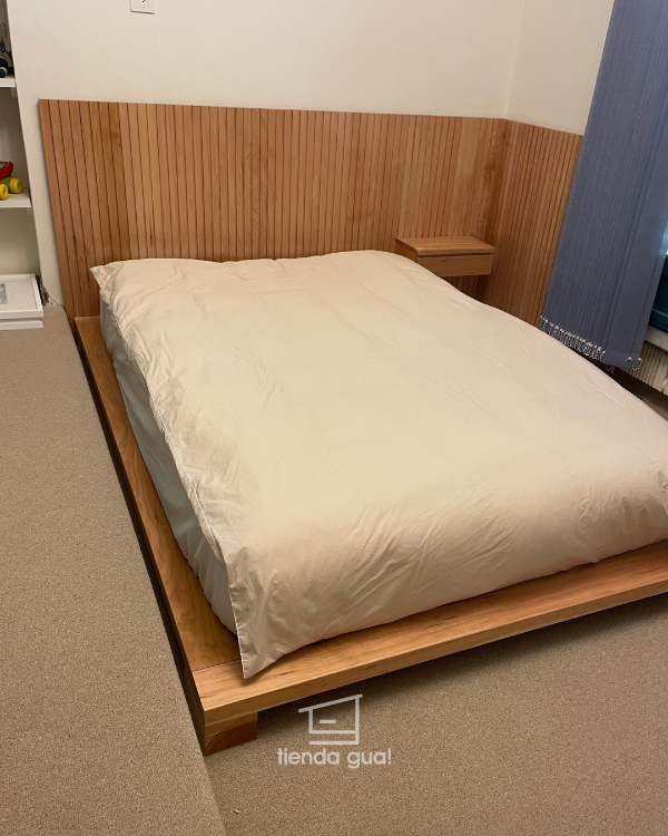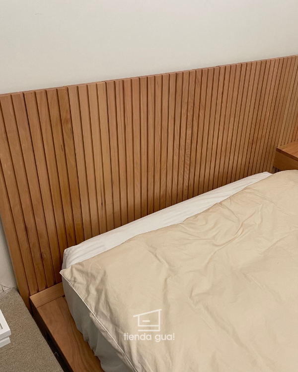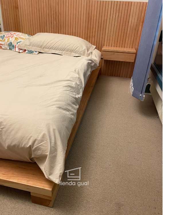 Revestimiento alistonado en lenga + mesita de luz nano a medida.