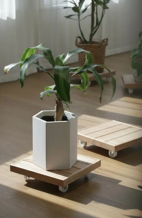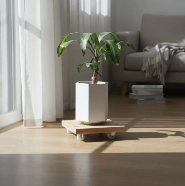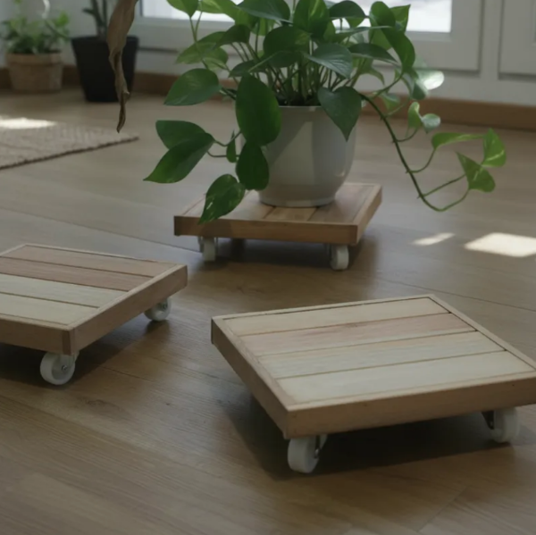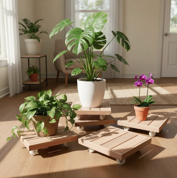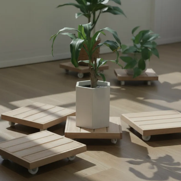 Fabricado en eucalipto, un material que combina resistencia y estética, cada soporte refleja un acabado natural que complementa la decoración de cualquier entorno. La capacidad de movimiento, gracias a sus ruedas, permite reconfigurar tu área de cultivo de manera sencilla y rápida.